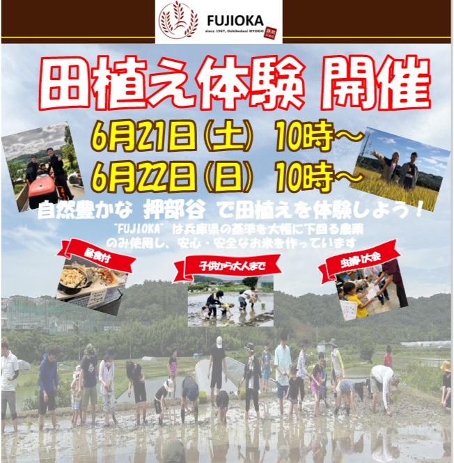 6月21日(土)22日(日)藤岡石油店さんが押部谷で田植え体験イベントを開催されます。