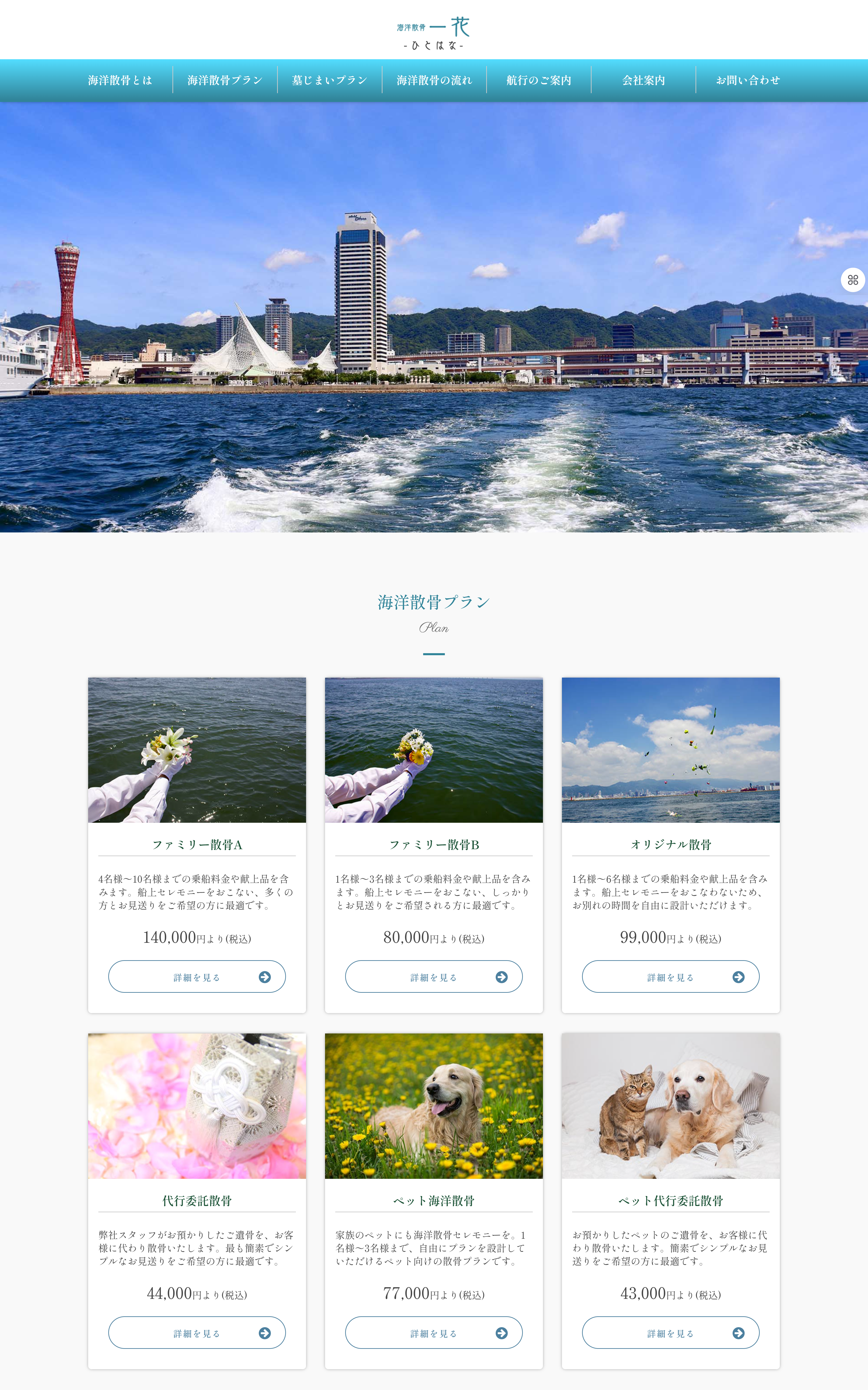 海洋散骨は、火葬場においてご遺体を火葬したあと、収骨を経て持ち帰られるご遺骨を、細かくパウダー状(粉骨)にしてから海へ還すご供養の形をいいます。弊社の船舶は、メリケン波止場から出港し、神戸港沖の散骨ポイントへ向かいます。流れはプランにより異なりますが、ご一緒に乗船いただくプランでは船上セレモニーをおこなってから、散骨していただきます。